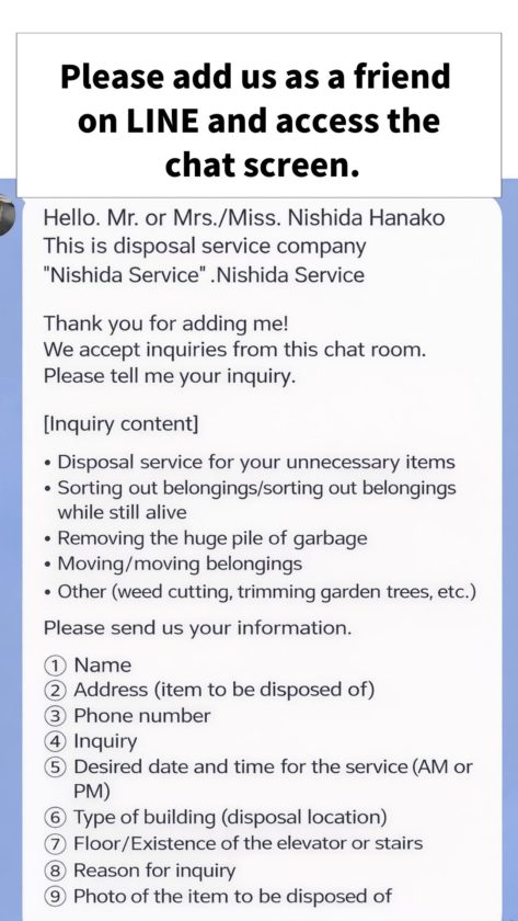 When we have a clear understanding of the items to be collected, their quantity, and the removal conditions, we can promptly offer a concrete estimate via LINE.